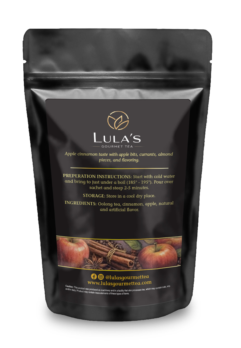 Black Tea, Apple Pieces, Raisins, Cinnamon, Natural & Artificial Flavor, Almond